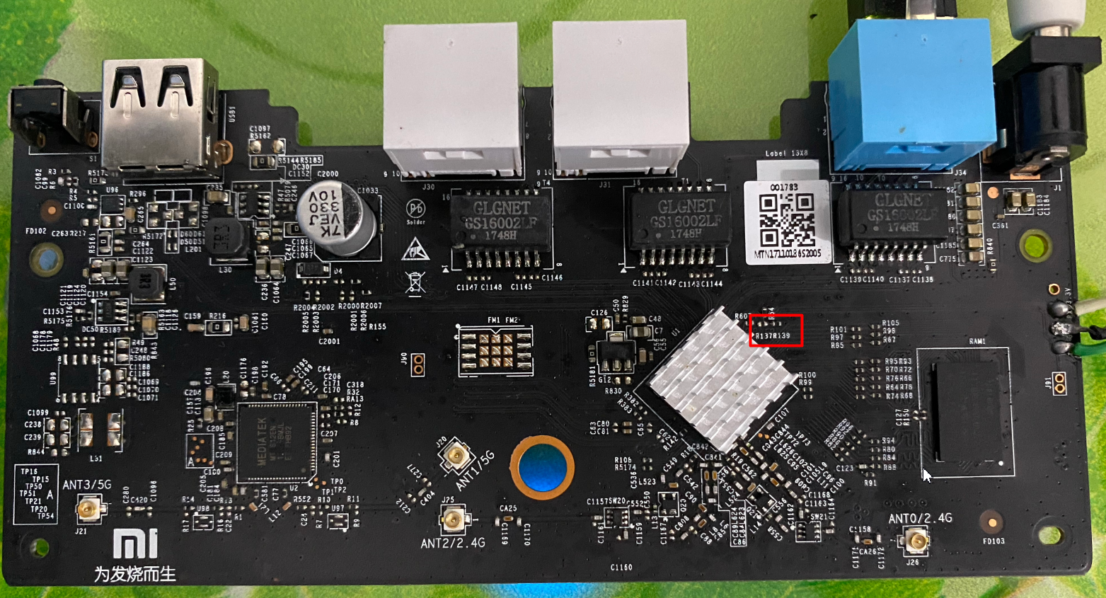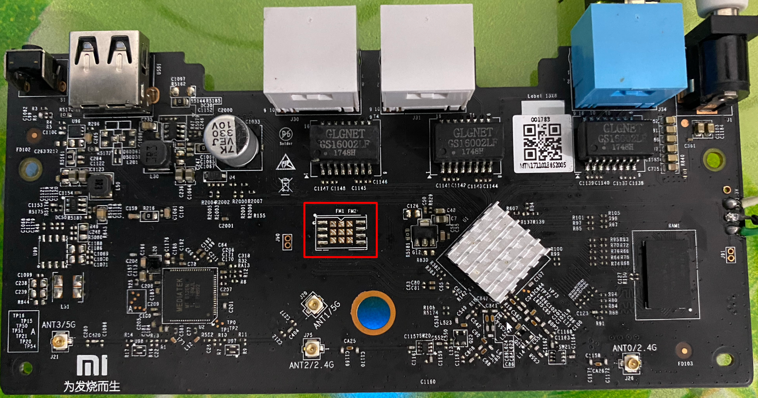 然后把 MINI 的引导程序(这里用的是 breed)用编程器先刷到 NOR Flash 上,然后再焊接到主板上(主板上的白点对应 Flash 的凹点),最后在 breed 里面再刷入固件即可。